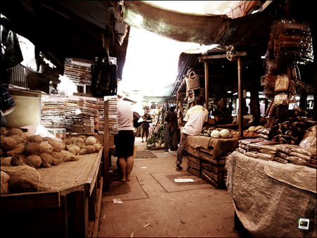Nicht weit von der Kirche, in der Creek Road, befinden sich die Markthallen. Es ist inzwischen 16:15 Uhr, eigentlich recht spät, um einen Markt zu besuchen. Insofern ist vom hektischen Markttreiben, insbesondere bei den Metzgern und den Fischern, nichts mehr zu sehen. Deren Ware ist schon lange weg. Die Gerüche und die hygienischen Bedingungen kann man nur noch erahnen. Man müsste den Markt, will man echt was sehen, unbedingt morgens besuchen.