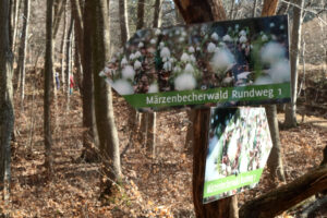 Unter anderem wird erklärt, dass Märzenbecher-Bestände inzwischen sehr selten sind, weshalb der Wald hier 1988 zum Naturschutzgebiet erklärt wurde.