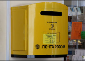 Eine Karte nach Deutschland kostet übrigens 40 Rubel, das sind etwa 68 Cent. Dabei musst du aber eines beachten: Nicht in den gelben Briefkasten werfen! Der ist nur für Отправления первого класса (innerrussische Post der ersten Klasse). Für Post nach Deutschland musst du nach einem blauen Briefkasten suchen.