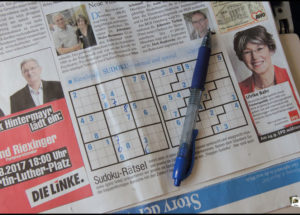 Susanne und ich vertreiben uns die Zeit mit einem Sudoku. Das ist extrem schwer und wird uns wohl bis Moskau beschäftigen. Aber selbst bis dorthin schaffen wir´s nicht, denn inzwischen geht der Flieger bereits runter. Sollten wir so viel von der Verspätung eingeholt haben? Ja, tatsächlich, gegen 16:44 Uhr beginnt der Landeanflug. Die Stewardessen verteilen wieder Spuck-Tüten, die aber nicht zum Einsatz kommen, zumindest in meinem Umfeld nicht.