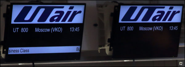 Bei UTair steht, obwohl der Flug erst 13:45 Uhr abgeht, bereits eine Riesenschlange. Grund ist wohl ein Tourist, der einen Glastisch mit über zwei Meter Durchmesser mitnehmen will. Nach 15 Minuten schließlich wird er vom Schalter weggeschickt und es geht langsam weiter. Endlich sind auch wir dran. Mein Koffer wiegt 17 Kilogramm. Das kostet, weil Gepäck bei dieser Airline nicht dabei ist, 35 € Gebühren.