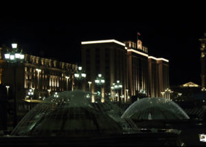 Dann gehen wir hoch auf den Roten Platz. Die Blumenpracht vorm Kaufhaus GUM ist bei Nacht leider nicht zu sehen. Aber auch die Ansicht mit den beleuchteten Gebäudekanten ist für mich nicht ohne Reiz.