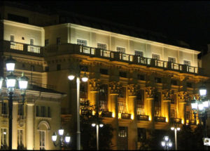 Das Gebäude, das sich beim Rückweg zum Taxi so golden schimmernd in Szene setzt, ist lediglich ein Hotel, nämlich das Гостиница Националь (das Hotel National).
