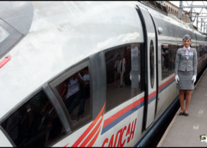 Nach 680 Kilometer Fahrt laufen wir auf die Minute genau im Moskauer Bahnhof von St. Petersburg ein. Als der Sekundenzeiger an der Bahnsteigs-Uhr oben „klick“ macht, gehen die Türen auf. Da könnte sich die Deutsche Bahn mal was von abschneiden.