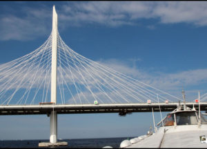 Sobald man aber unter der erst vor kurzem fertiggestellten Brücke der Autobahn „Western-High-Speed-Diameter“ hindurch ist, gibt das Tragflügelboot „voll Stoff“. 60 km/h oder 32,5 kn kann das Boot erreichen. Alles wackelt und vibriert. Der Fahrtwind reißt an den letzten verbliebenen Haaren und knallt auf die Augen, dass diese trotz Brille weh tun. Aber was nimmt man nicht alles in Kauf für Fotos? Mit ner Knipse oder mit nem Handy – denke ich – kannst Du´s hier vergessen. Unter 1/1000 s ist einfach nichts drin.