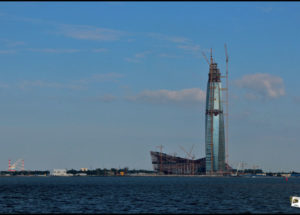 … und dann an der Baustelle des Lakhta-Centers, wo für Газпром (Gazprom, hat da nicht Schröder mit was zu tun?) das höchste Gebäude Europas entstehen soll. Mit geplanten 462 Metern fast eineinhalb Mal höher als der Eiffelturm, drei Mal höher als der höchste Kirchturm der Welt, das Ulmer Münster, und sogar noch höher als das Empire State Building in New York.