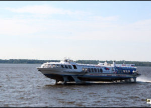 Heute wollen wir zur etwa 25 km entfernten Zarenresidenz Peterhof. Dazu nehmen wir ab der Admiraltejskaja Nabereschnaja 2 (das ist direkt beim Ehernen-Reiter-Denkmal) ein Meteor-Tragflügelboot, auf das 73 Personen passen. Die Fahrt kostet 500 Rubel (etwa 8,50 €).
