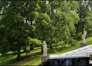 In unmittelbarer Nähe, im Monplaisir-Garten, gibt es dann sogenannte Spaßbrunnen. Peter der Große scheint nämlich nicht nur ein Staatsmann, sondern auch ein rechter Scherzkeks gewesen zu sein, immerhin soll er diese „Attraktion“ – die 2001 erneuert wurde – bereits 1721 angeregt haben.