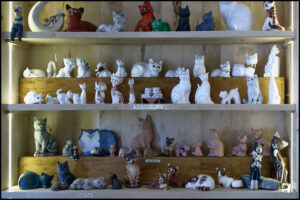 Wir kommen ins Katzen-Kabinett. Das ist eine Ausstellung mit ganz vielen Katzenfiguren und allem Krimskrams, den es eben so zum Thema gibt.