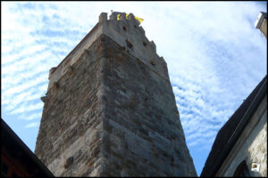 Besonders eindrucksvoll ist der Bergfried, der auch „Katzenturm“ genannt wird. Einer Legende nach musste hier der Wendenprinz Chakaz im Auftrag des bayerischen Herzogs Tassilo einen Turm errichten. Der Katzenturm ist 30 Meter hoch und erhebt sich über einer Grundfläche von 8 x 8 Metern. Sieben Meter über dem heutigen Eingang befindet sich der mittelalterliche Hocheingang. Für den Zutritt zum Turm wurde eine Leiter benötigt, welche der Sicherheit diente. Im Erdgeschoss befand sich das Verlies, welches nur durch das Angstloch in der Decke zugänglich war. Im zweiten Obergeschoss ist der Wohnraum mit dem Abritt und dem offenen Kamin. Darüber befindet sich ein Schlafzimmer. Eingeritzt in das Gesims des offenen Kamins findet sich hier die älteste Darstellung von Katze und Lilie, die heute noch Bestandteil des Burgwappens sind. Von der Wehrplatte aus hatte (und hat) man einen herrlichen Blick über das Härtsfeld bis zum Kloster Neresheim.
